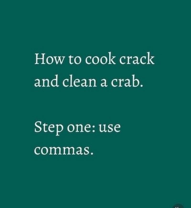 How to cook, crack and clean a crab. Some would argue that this is serviceable. It’s good enough. I disagree, but technically, this punctuation is plausible.